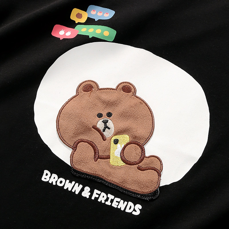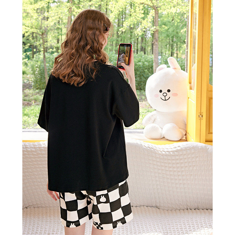 宽松加大码 青年男士 家居服 女凉感套装 芬腾布朗熊睡衣情侣纯棉短袖