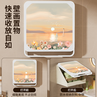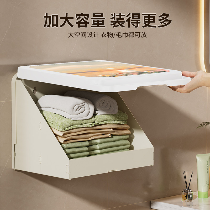 浴室壁画折叠收纳柜洗澡放衣服神器卫生间免打孔防水收纳箱置物架