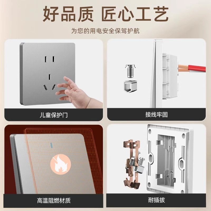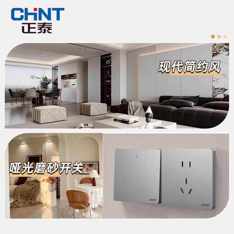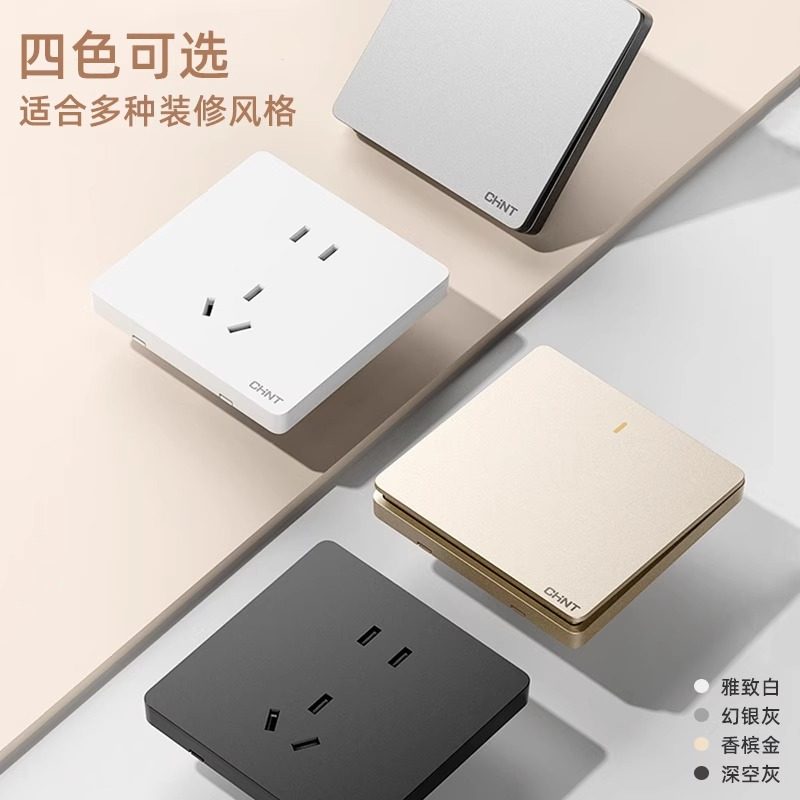 正泰开关插座官方官网86型家用6C一开五孔三孔16a墙壁银灰色面板