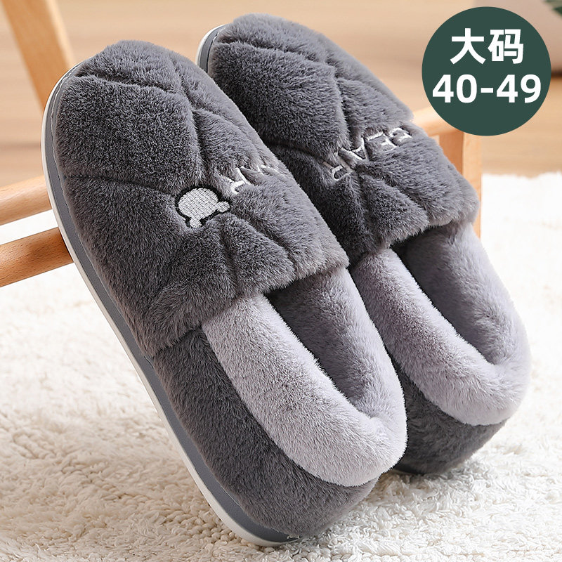 男 防滑防水静音厚底居家毛毛拖情侣棉鞋 买一送一女士秋冬季 棉拖鞋