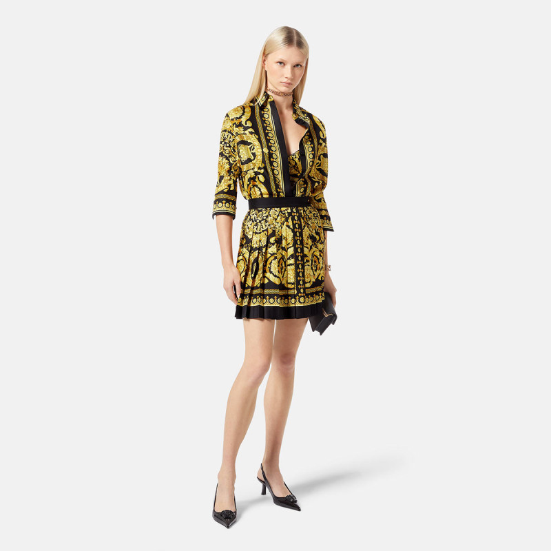 范思哲 VERSACE 女士Barocco真丝百褶裙 24期免息