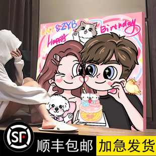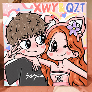 星蝶公主定制画手绘情侣真人照片装 饰画数字油画礼物生日卡通挂画