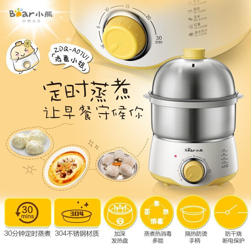 小熊煮蛋器定时蒸蛋器不锈钢家用自动断电迷你蒸锅鸡蛋早餐机双层