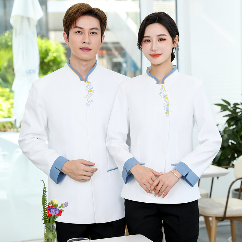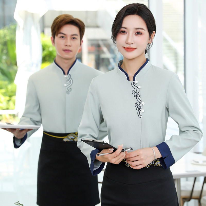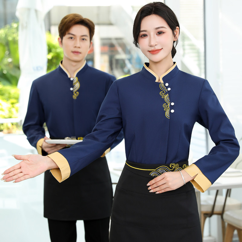服务员工作服长袖 制服定制logo 多米来酒店餐饮饭店男女服务员工装