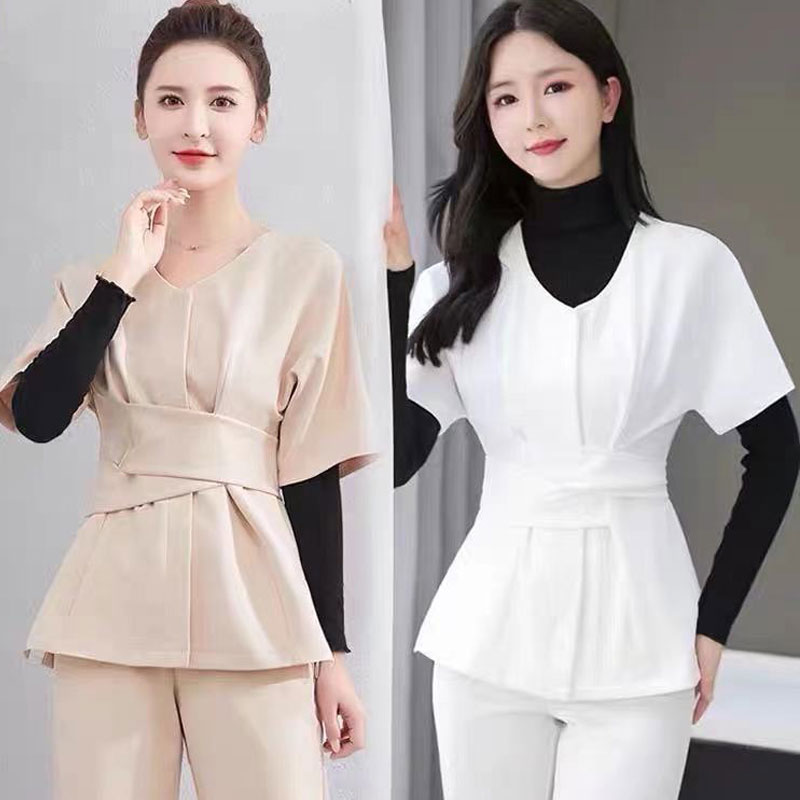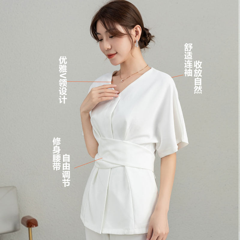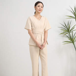 高端美容院美容师工作服女宽松气质养生疗愈技师短袖 黑色 工服套装