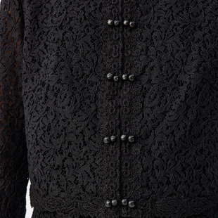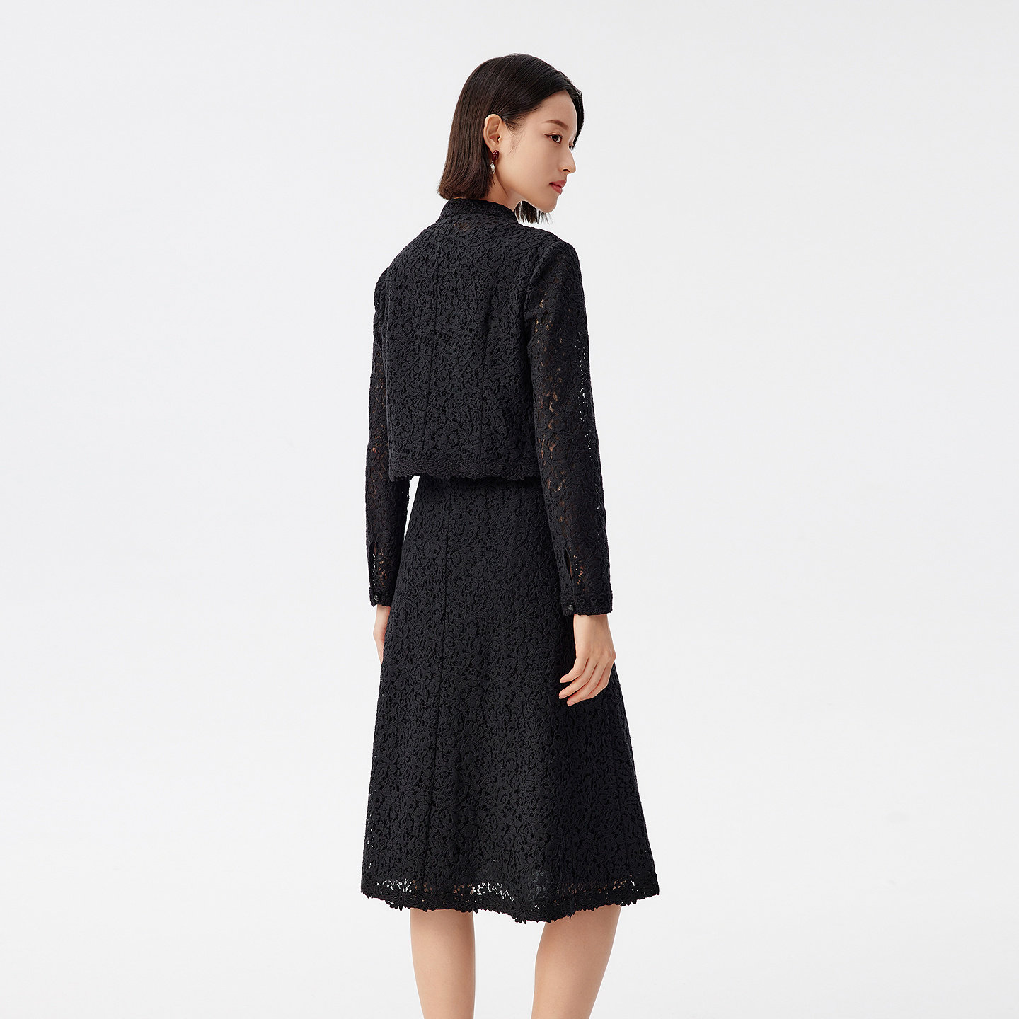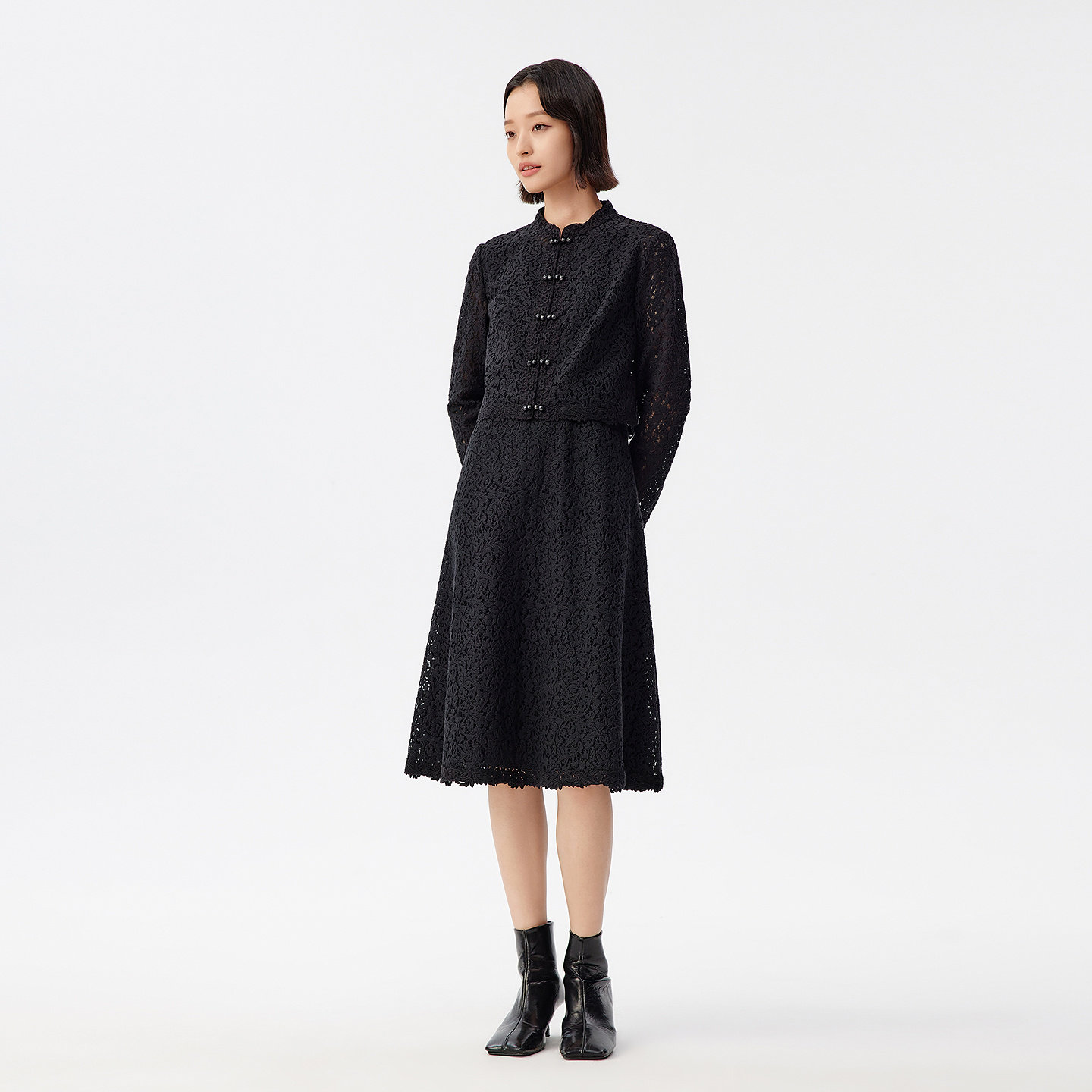 VGRASS维格娜丝羊毛连身裙秋冬季 莲花纹经编蕾丝花瓣机理感连衣裙