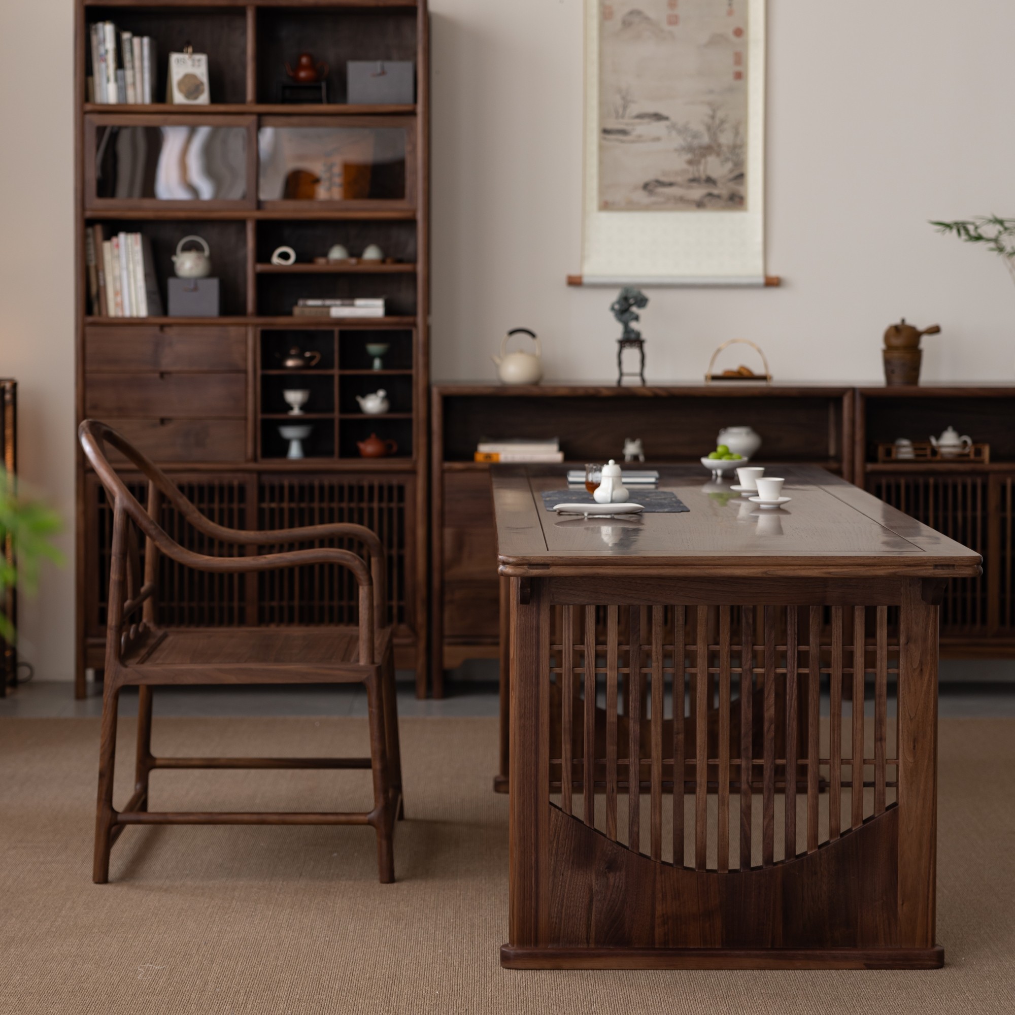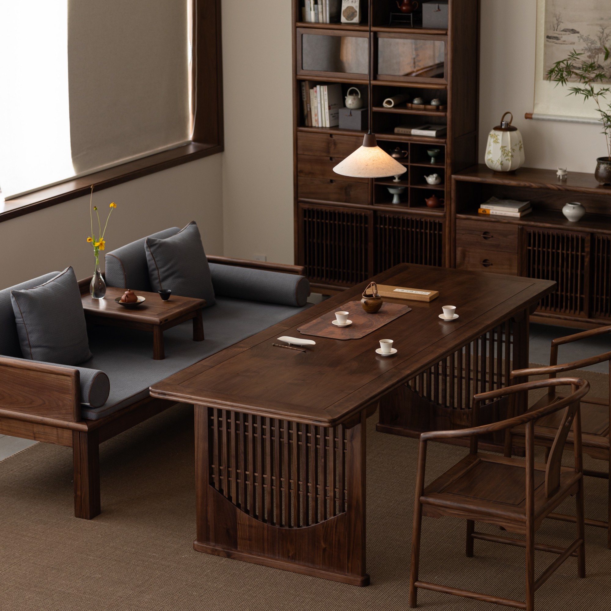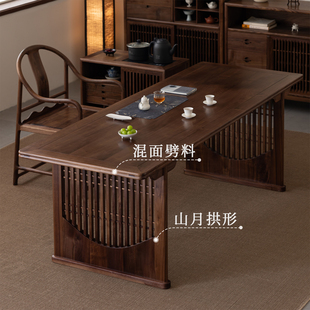 空器新中式 美学茶台茶室泡茶 实木茶桌椅组合黑胡桃木办公室宋式