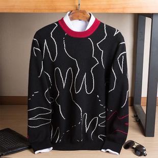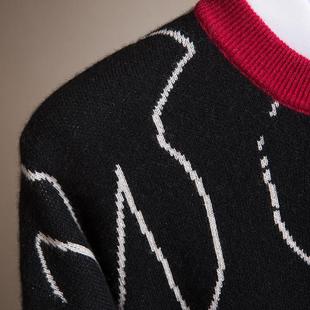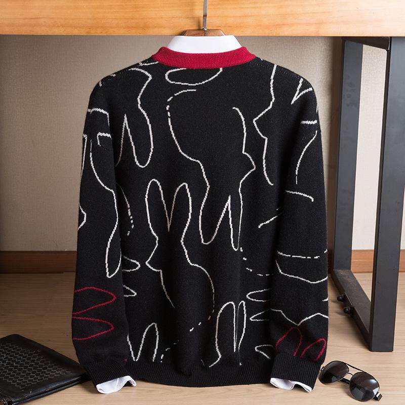 加厚落肩冬季 男士 青年100纯羊绒毛衣男 撞色提花纯山羊绒衫 新款