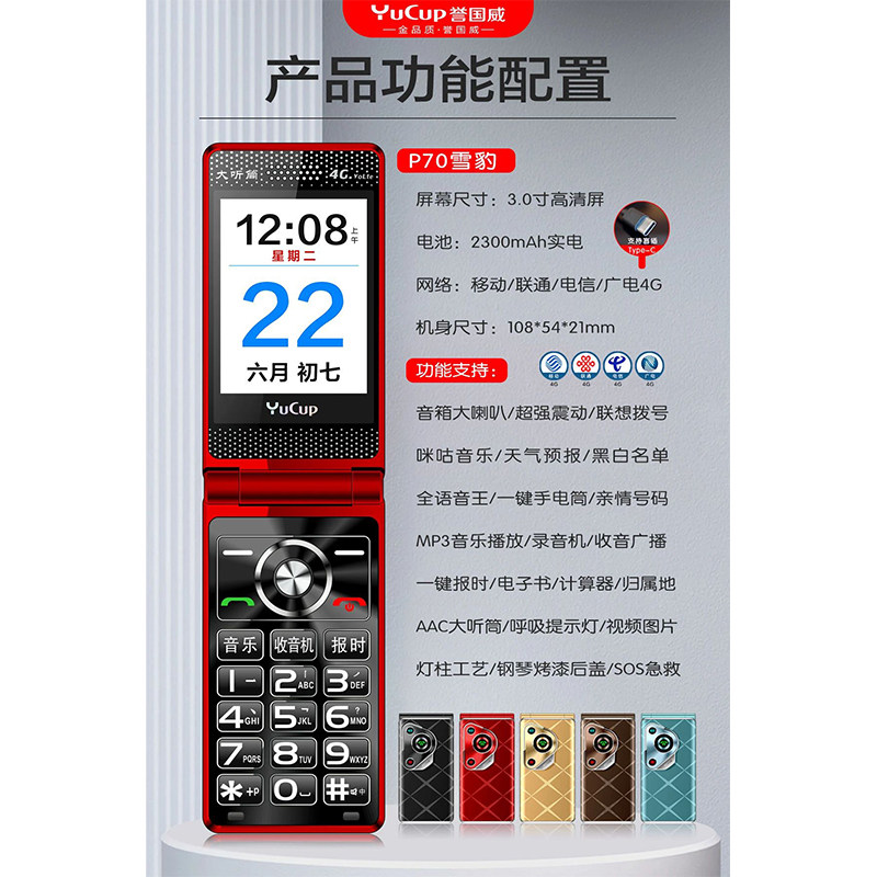 百合BIHEE 双屏幕全网通4G翻盖老人手机5G电信移动联通老人机