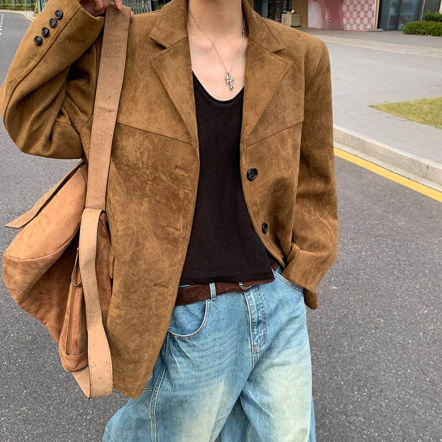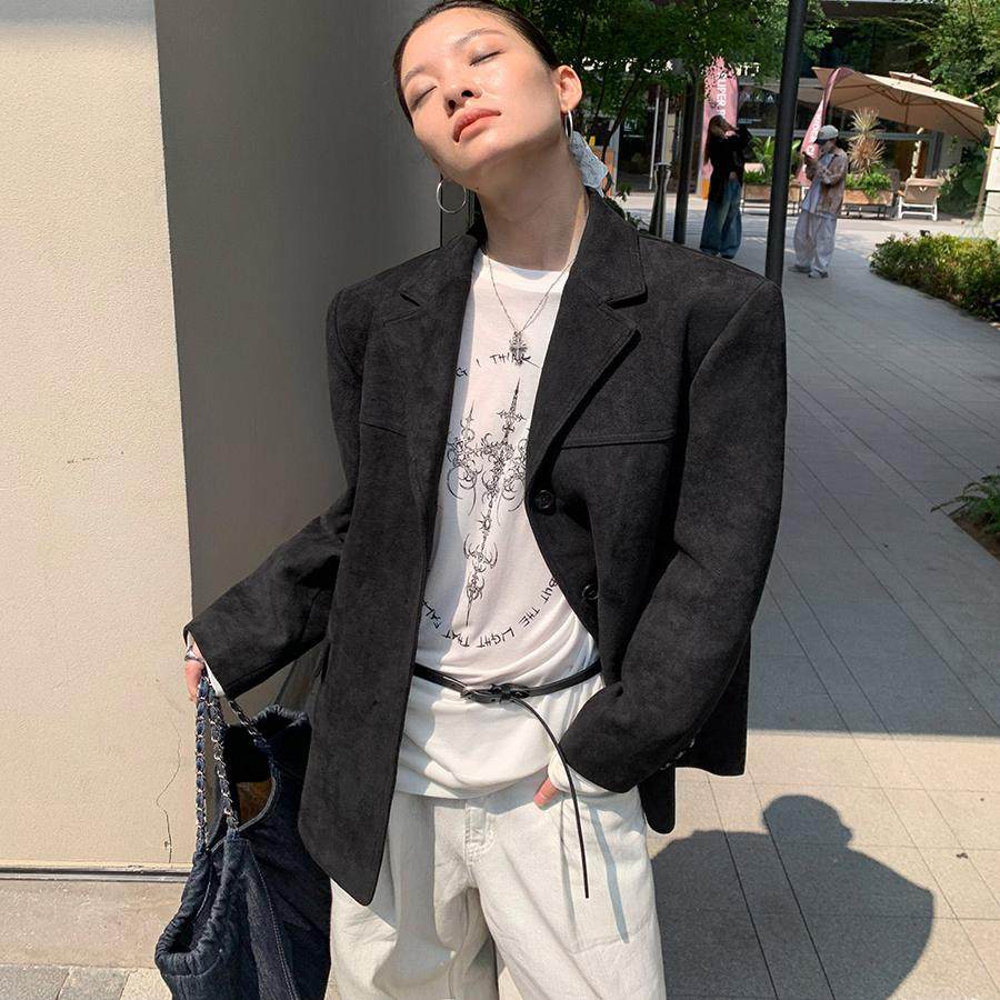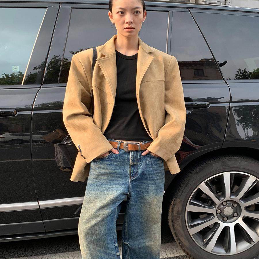 服外套 复古高级感雾面纯色极简宽松休闲麂皮绒西装 洛边 锁住暖风