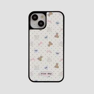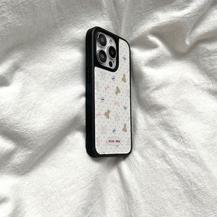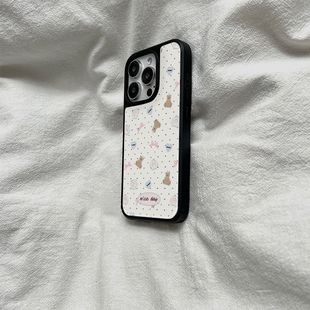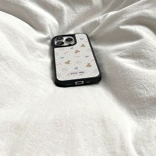 原创韩国ins风蝴蝶结小熊亚克力黑边适用苹果iPhone16promax手机壳15pro小米14Pro保护套华为mate防摔三星S23