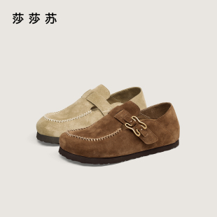 咖啡贝果两穿半拖勃肯鞋 莎莎苏春夏新款 内增高一脚蹬 杨超越同款