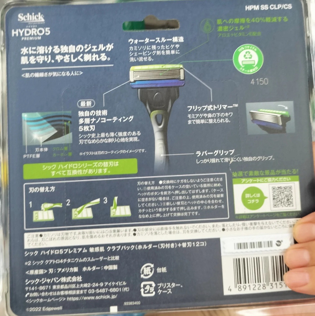 日本委托代买Schick舒适剃须刀hydro5手动男士 刀片 刮胡刀水次元