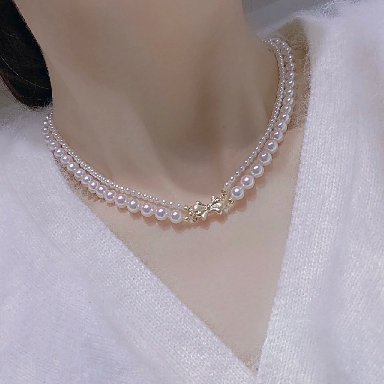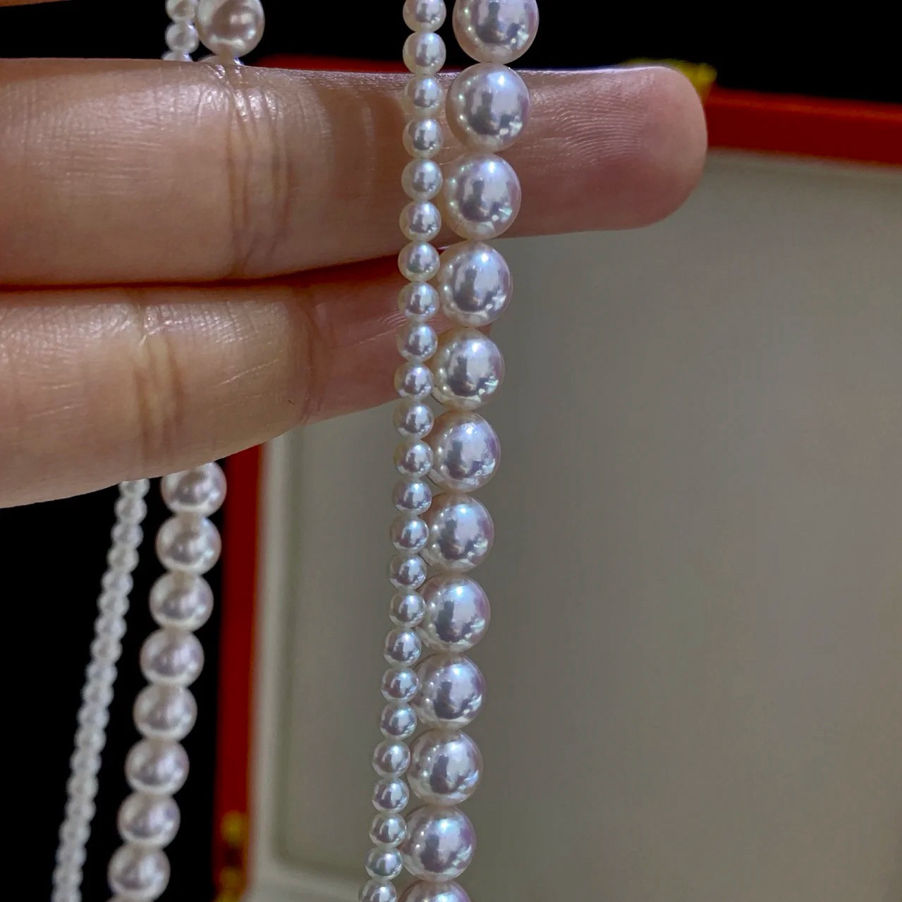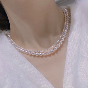 日本海水Akoya珍珠项链18k金双层颈链多种戴法轻奢时尚 锁骨链极光