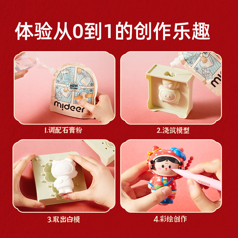 mideer弥鹿儿童石膏娃娃涂色玩具手工diy制作小手办模具新年礼物