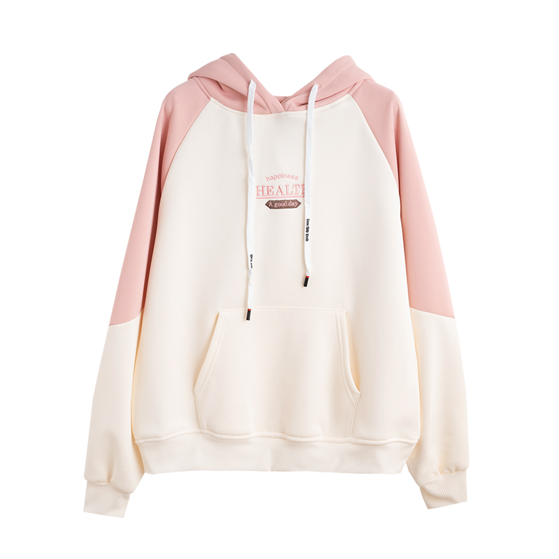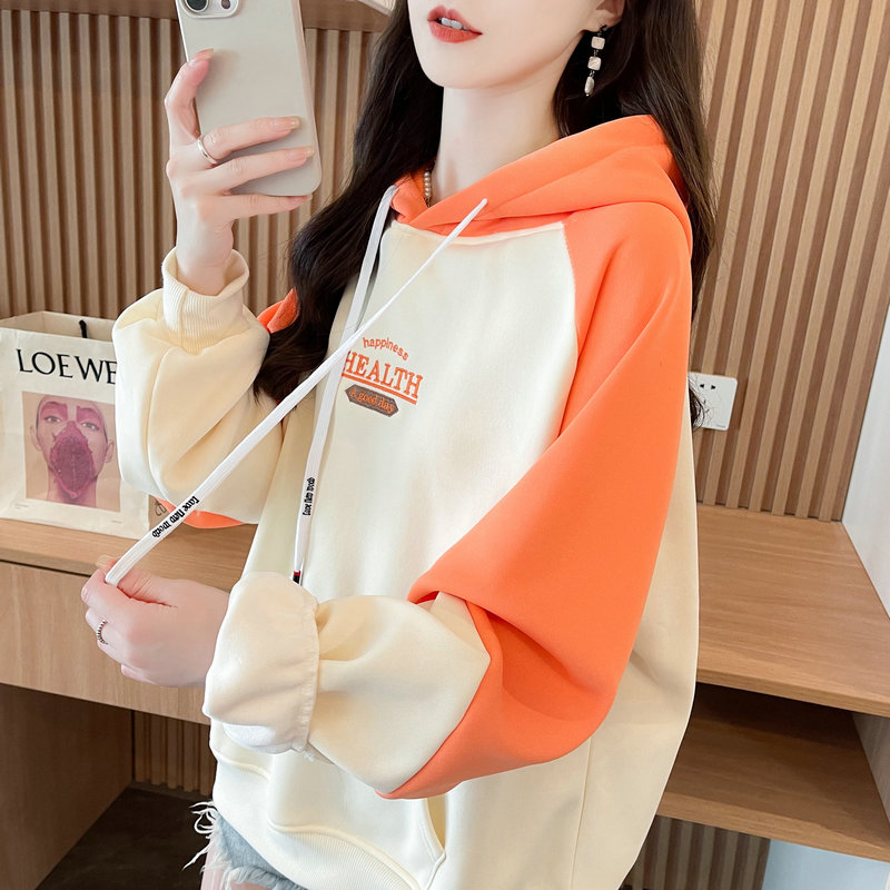 宽松大码 韩版 慵懒风加绒加厚初中生外套 秋冬季 连帽卫衣女2024新款