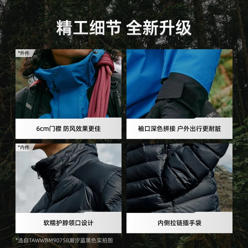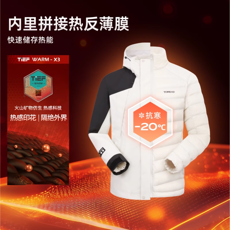探路者冲锋衣男秋冬季 户外套羽绒三合一防风防水保暖登山服外套女