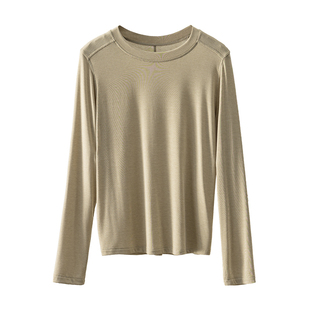 T恤H女春天家2U78 羊毛拼缝圆领长袖 特 法G巨舒服天丝 软糯篙弹