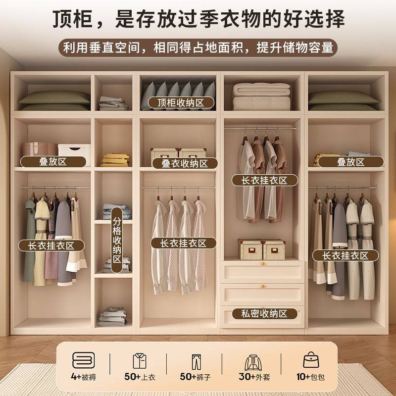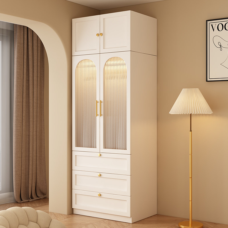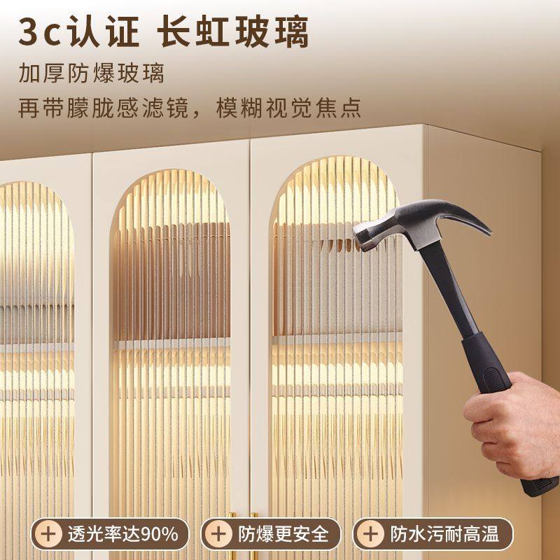 实木衣柜家用卧室新款 柜子奶油风儿童大衣橱 组合定制带玻璃门法式