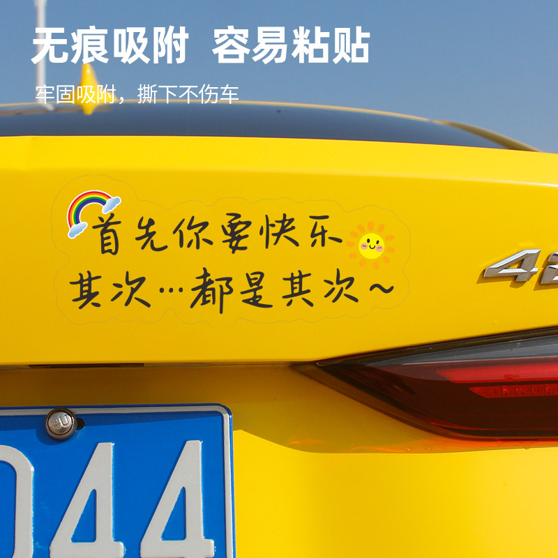 首先你要快乐车贴后挡风贴纸天窗贴电动车贴个性 车贴纸创意文字贴