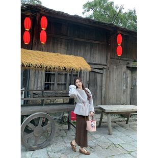 Lonslan 自制小众设计高领绑带连衣裙长裙 春夏款