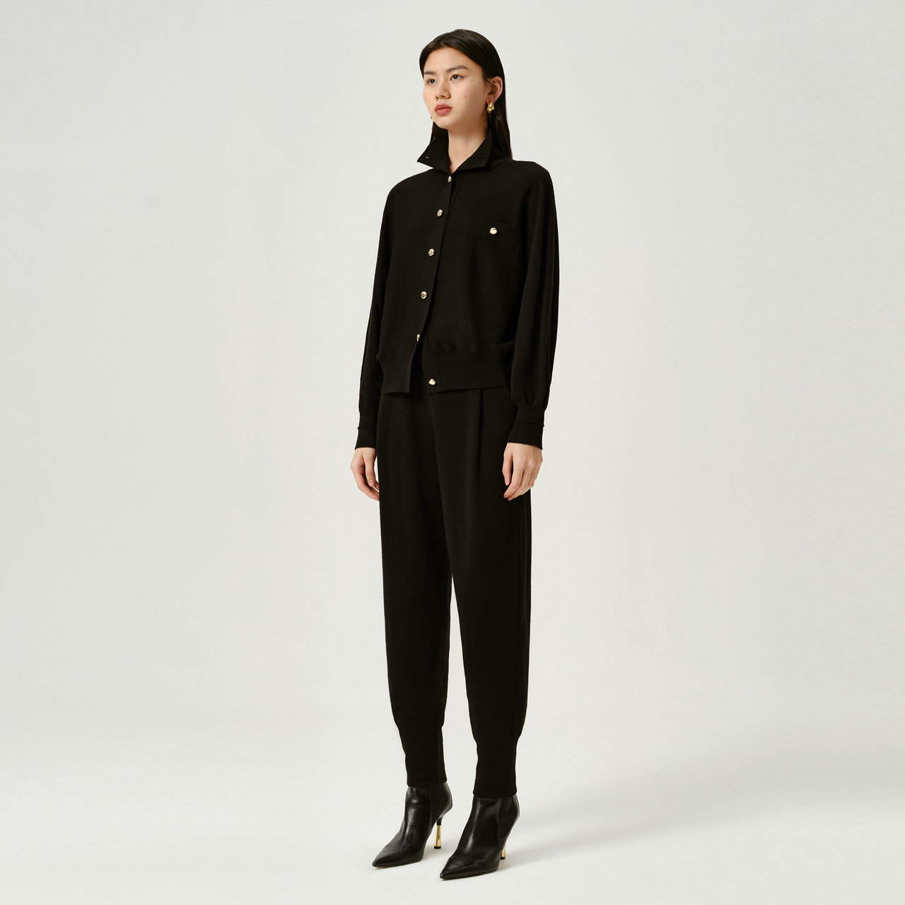 IMM尹默冬美丽诺羊毛松紧腰抽绳款 女 锥形小脚针织休闲长裤