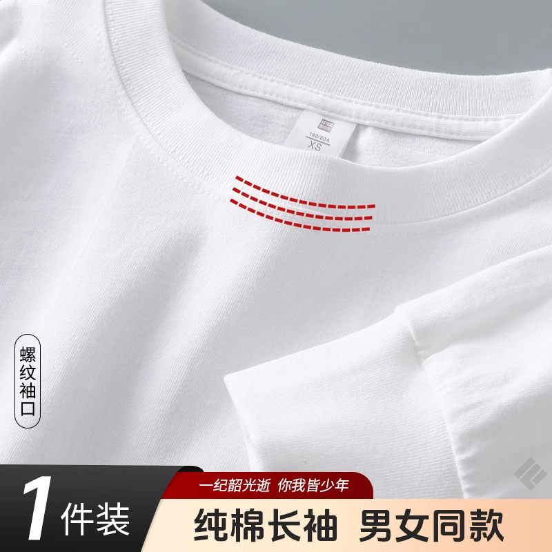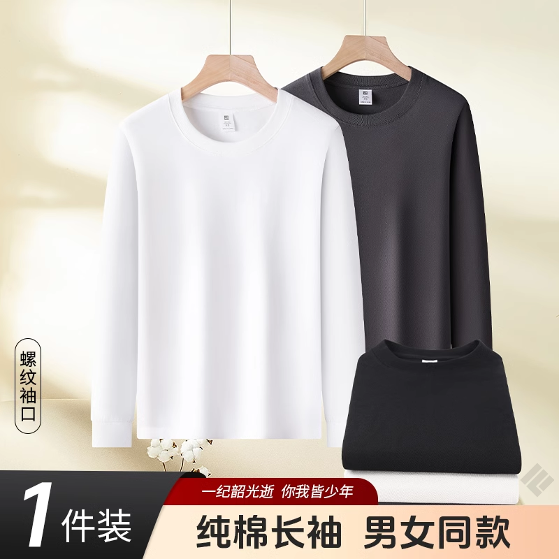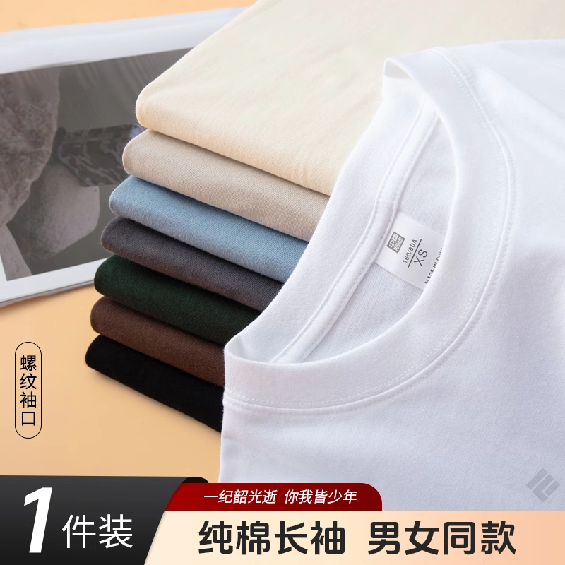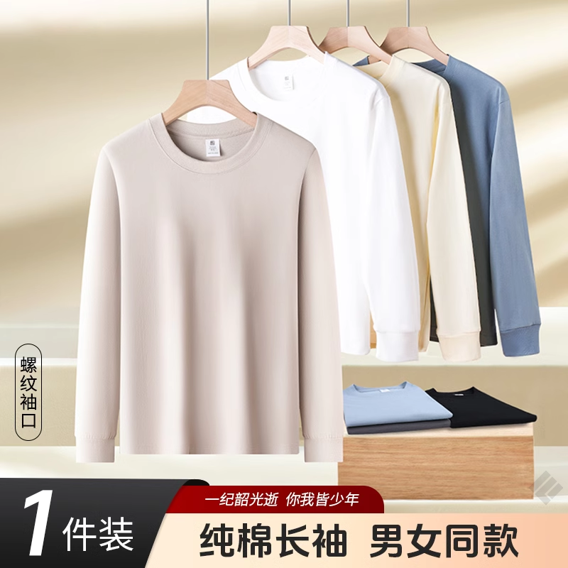 凡客依舍长袖 柔软简约休闲百搭圆领宽松舒适纯棉T恤 100%棉单件装