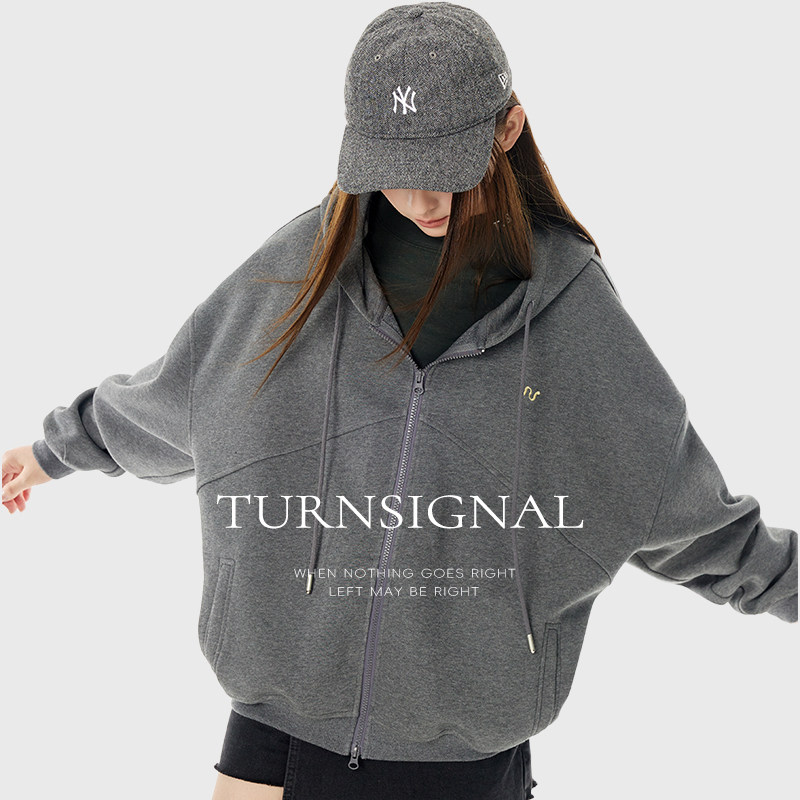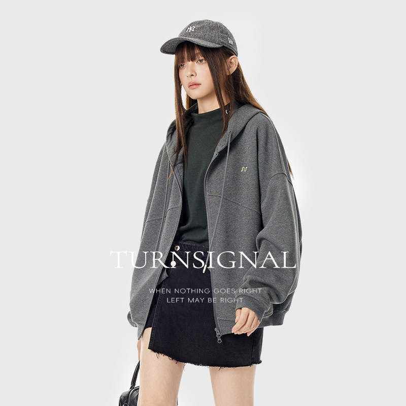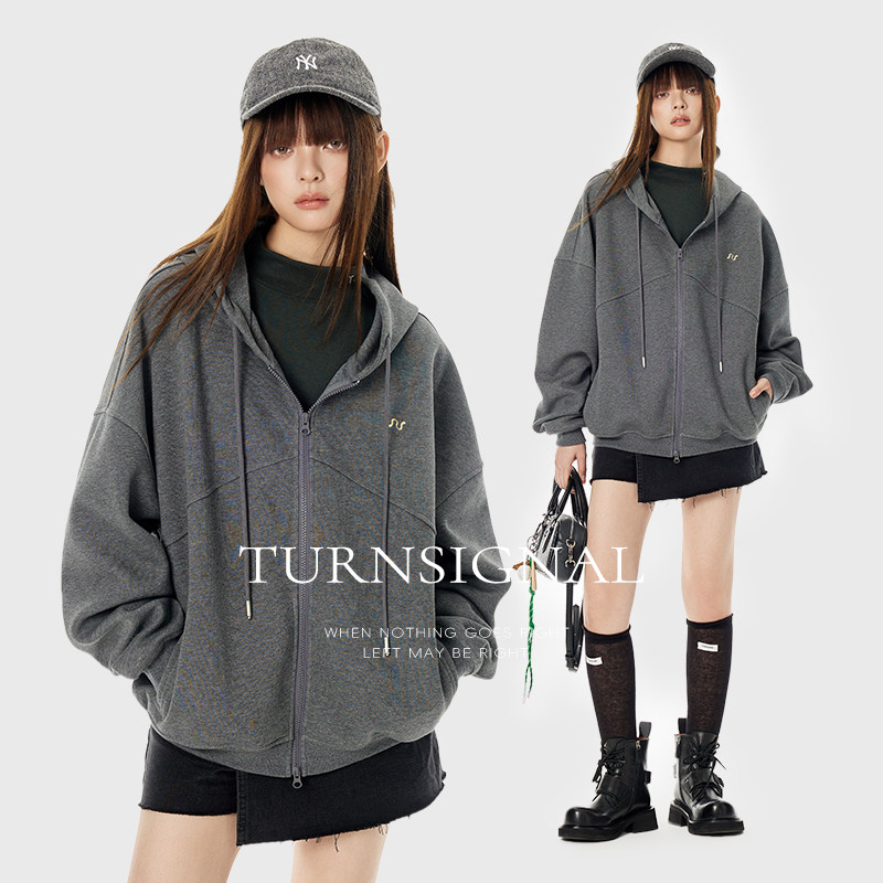 休闲宽松拉链帽衫 2026新款 连帽卫衣外套女春季 TurnSignal潮牌开衫