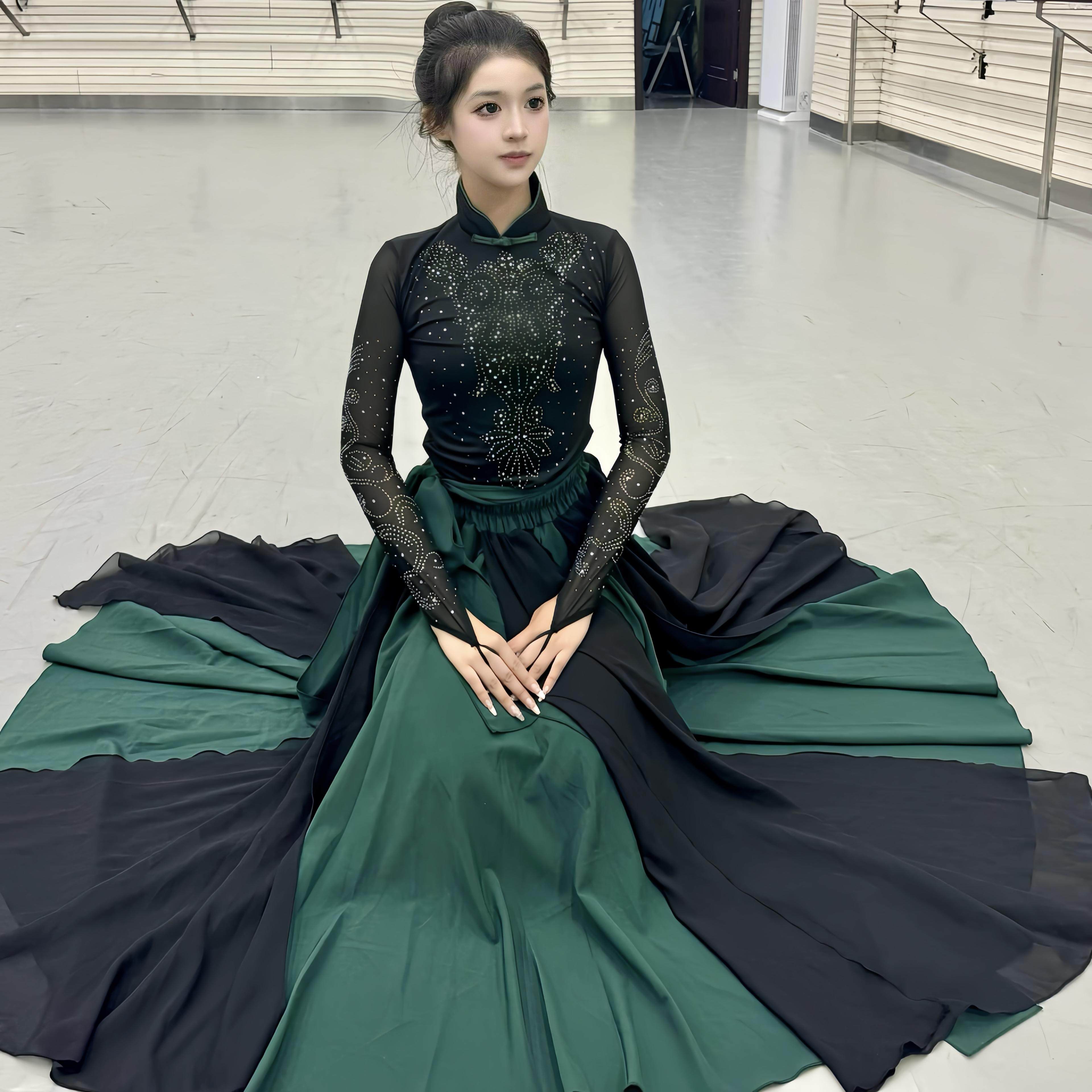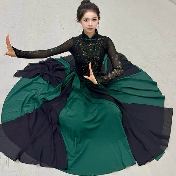 女成人艺考大摆裙练习长裙民族半身裙套装 新款 蒙古族舞蹈演出服装