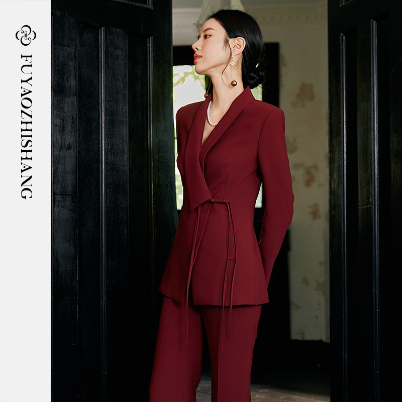 安可拉红西装 职业装 套装 国风盘扣西服外套新中式 女秋季 FUYAO扶摇