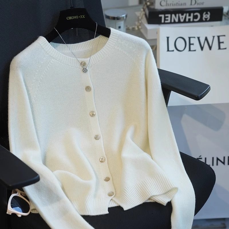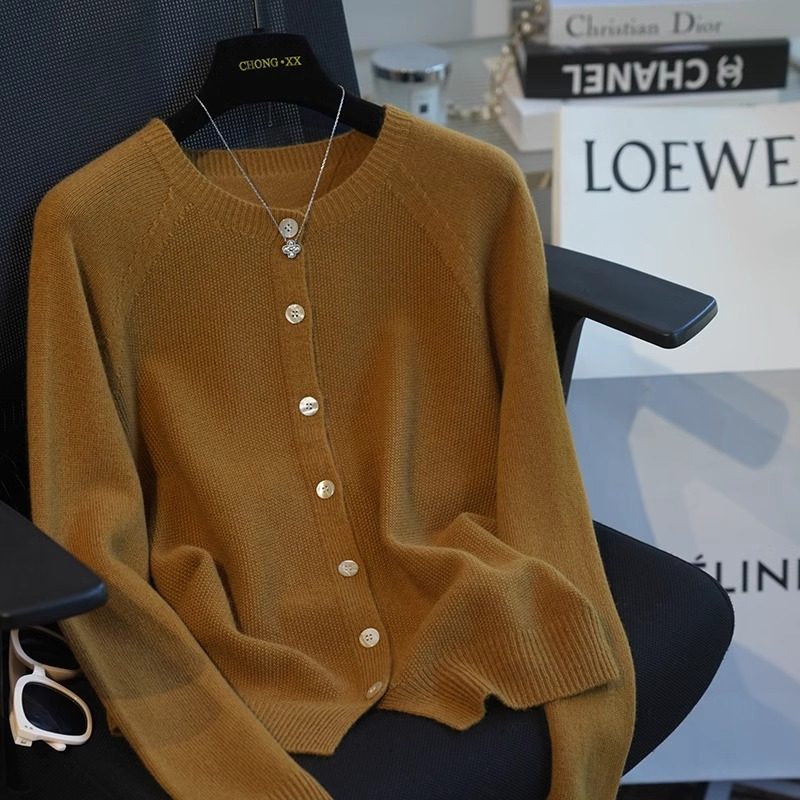 女毛衣秋冬906B 针织开衫 虫小小 100绵羊毛无缝菠萝针圆领休闲长袖