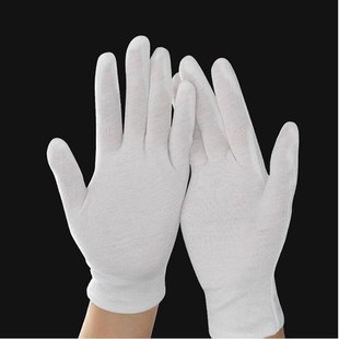 白手套纯棉薄文玩珠宝盘珠礼仪耐磨防滑劳保白色手套军训防晒开车