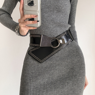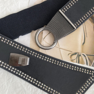 朋克风辣妹铆钉宽腰封女欧美高级感配裙子腰带百搭圆扣斜跨皮带潮
