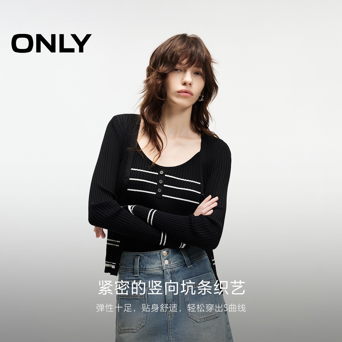 女 显瘦毛衣针织衫 12433B006 上衣含绵羊毛螺纹百搭套装 ONLY冬季