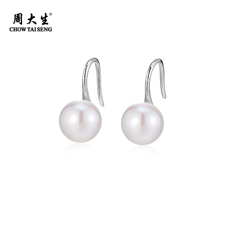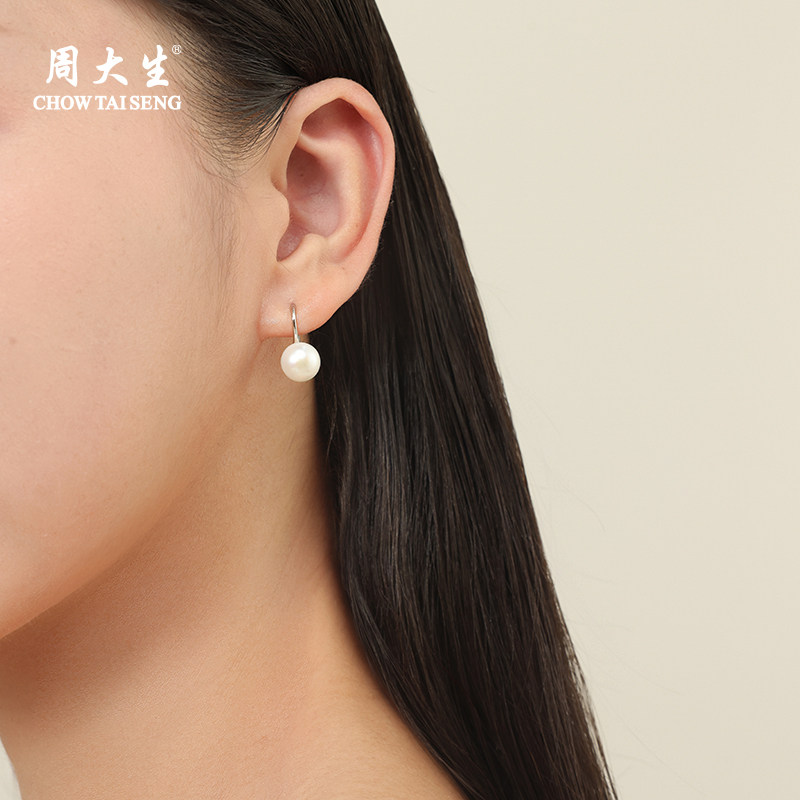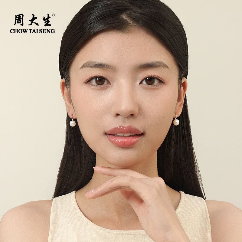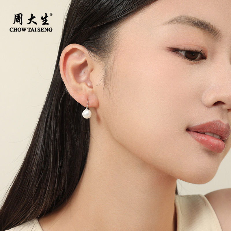老凤祥官方淡水珍珠耳环s925银耳坠强光耳钩正品 珠宝耳饰圣诞礼物