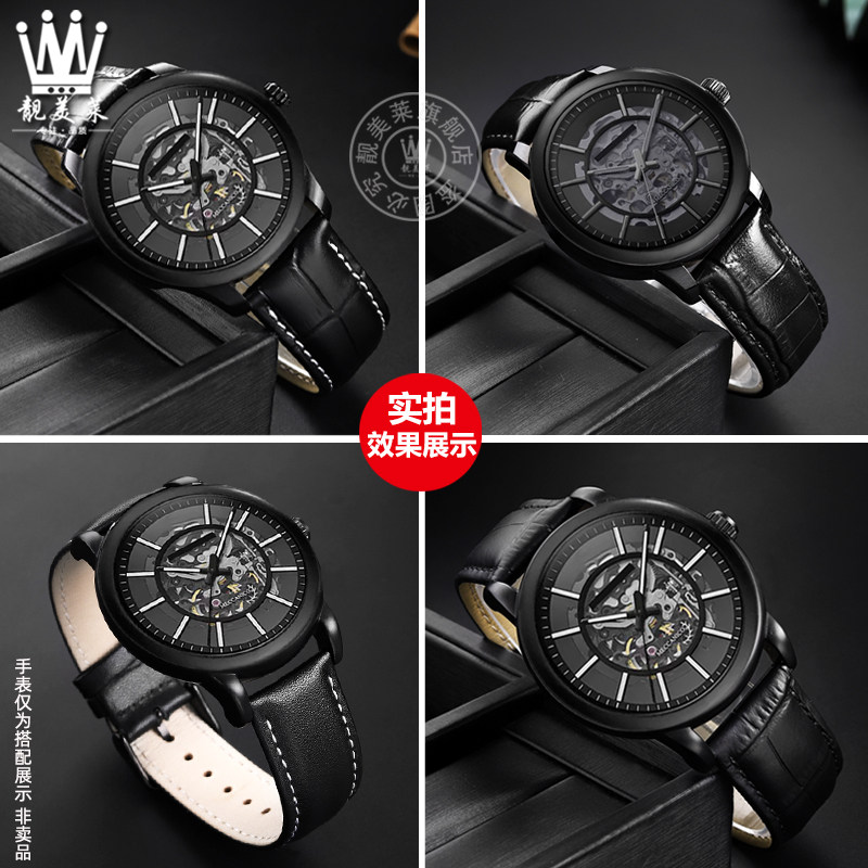 AR1981真皮手表带男 60045 靓美莱适配阿玛尼黑武士AR6008 60007