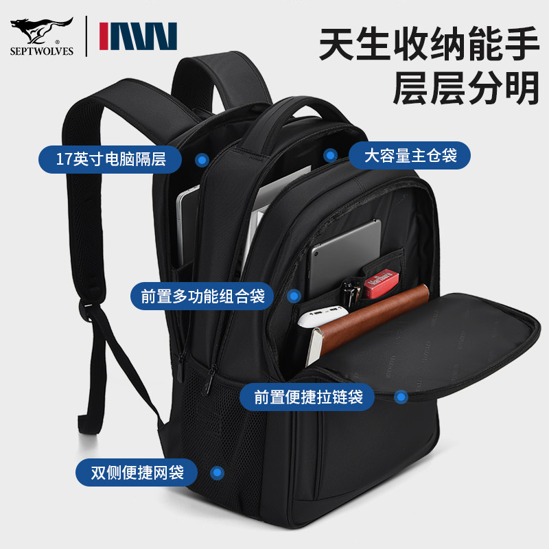 七匹狼背包男双肩包大学生高中书包大容量瑞士商务电脑包新款 旅行