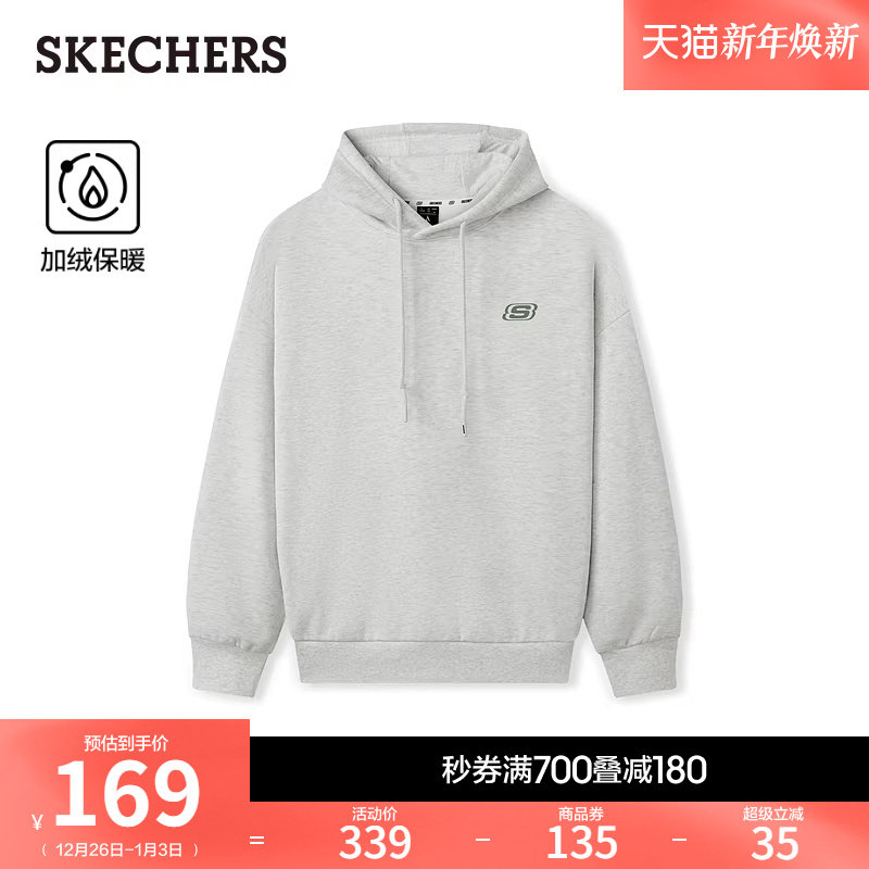 斯凯奇2026新年战袍男女红色连帽卫衣百搭情侣加绒纯棉冬灰色上衣