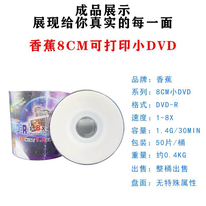 简装 香蕉啄木鸟可打印3寸8CMDVD R空白DVD刻录盘摄像机光盘50片装