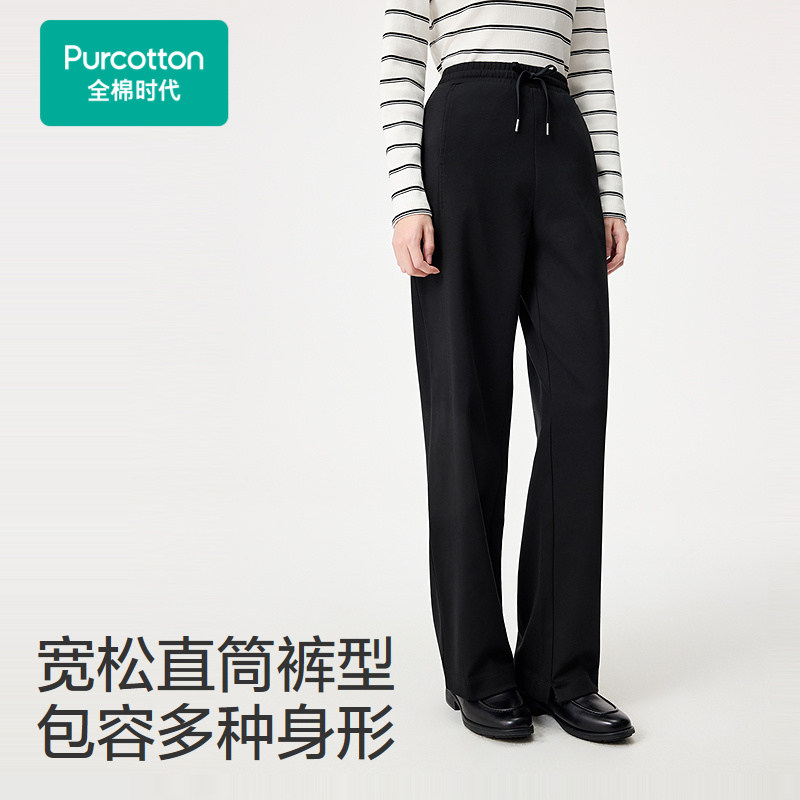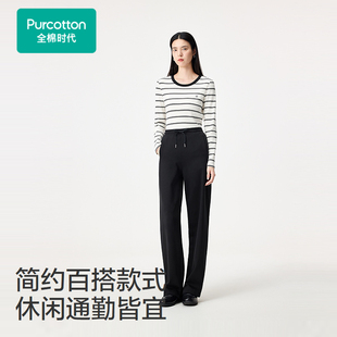 通勤百搭254 白色修身 全棉时代长裤 秋级女士针织直筒裤