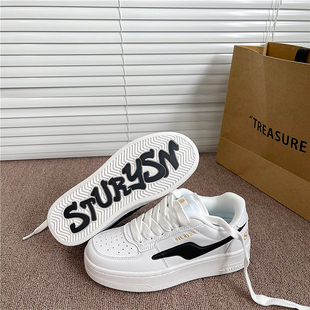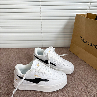 子E7K1DCM5 增高休闲面包运动鞋 百丽厚底贝壳头小白板鞋 女2025新款