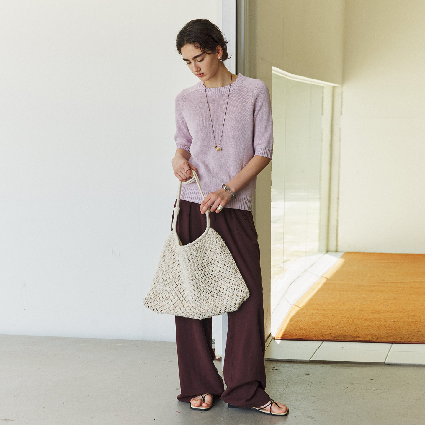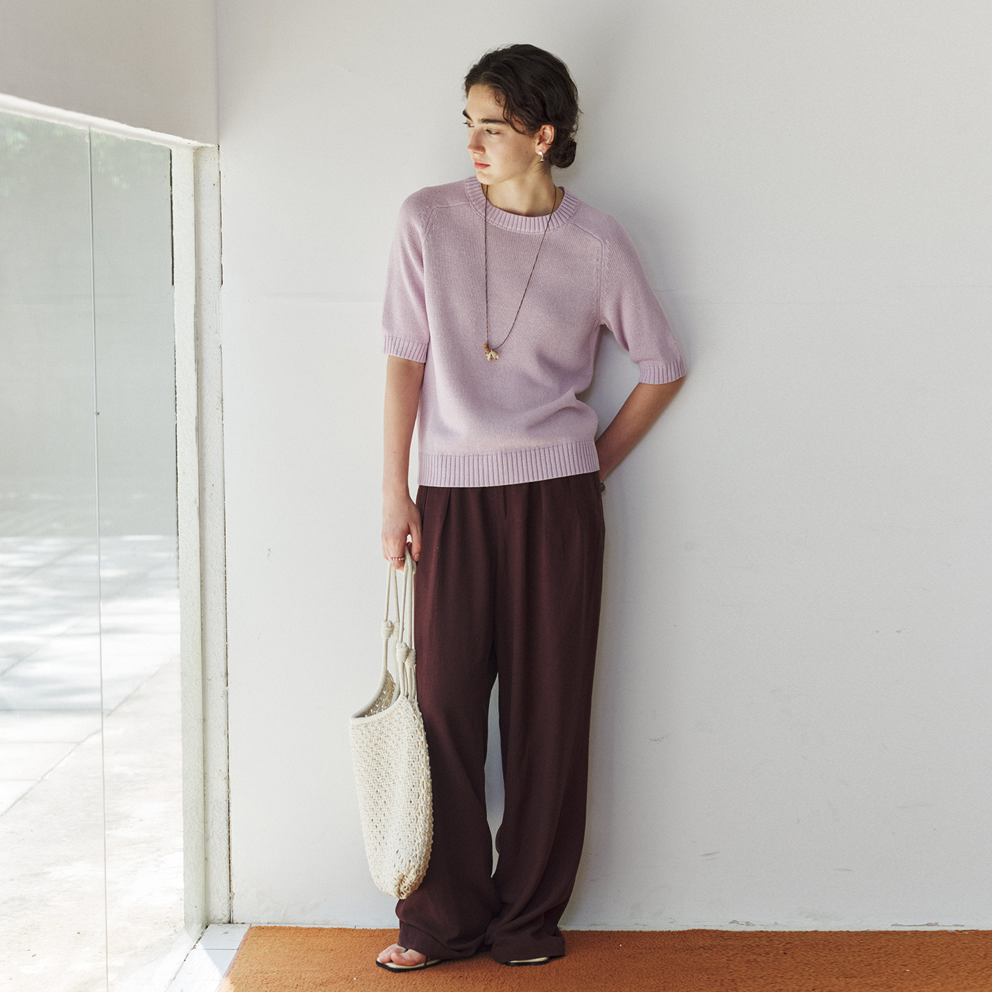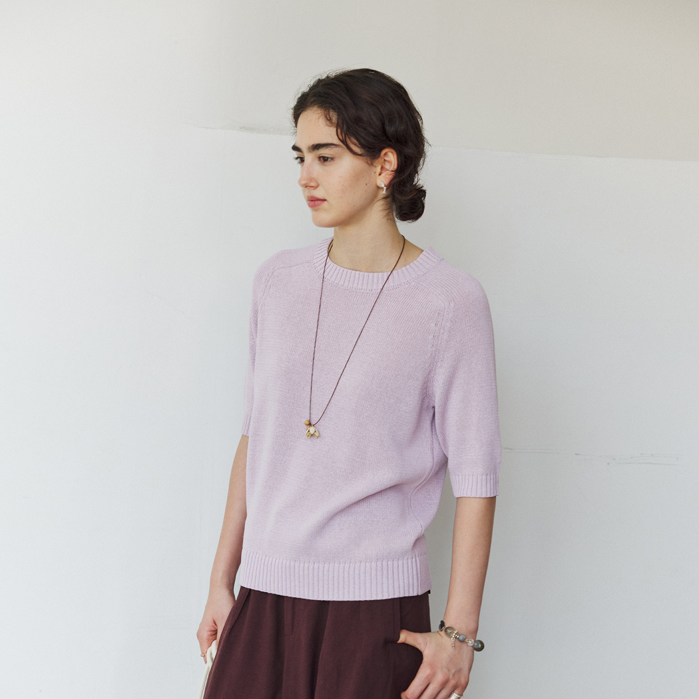 针织衫 NON 上衣女百搭宽松中袖 圆领马鞍肩打底衫 RESTRAIN简约经典