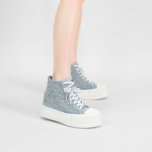 女610HAA 珠片拼接高帮休闲鞋 iiJin艾今25新款 8.5cm厚底内增高时尚