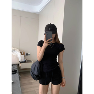 子春夏季 瑜伽裤 薄款 弹力紧身热裤 外穿2025新款 无托腹孕妇运动短裤