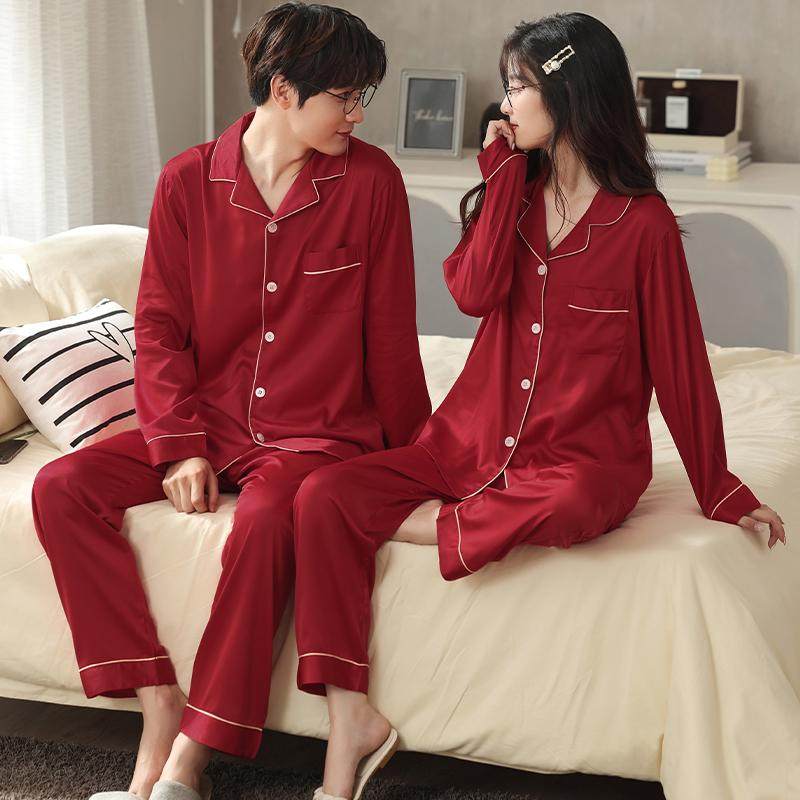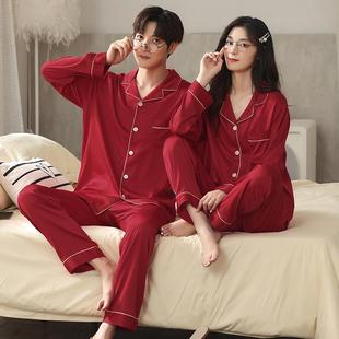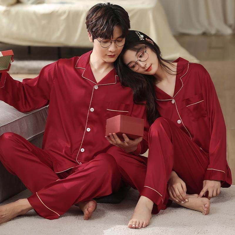 家居服礼盒 高级感新婚结婚男款 猫人红色情侣睡衣女冰丝长袖 春秋款