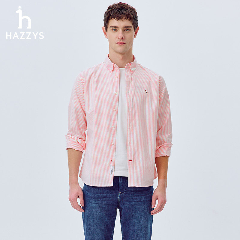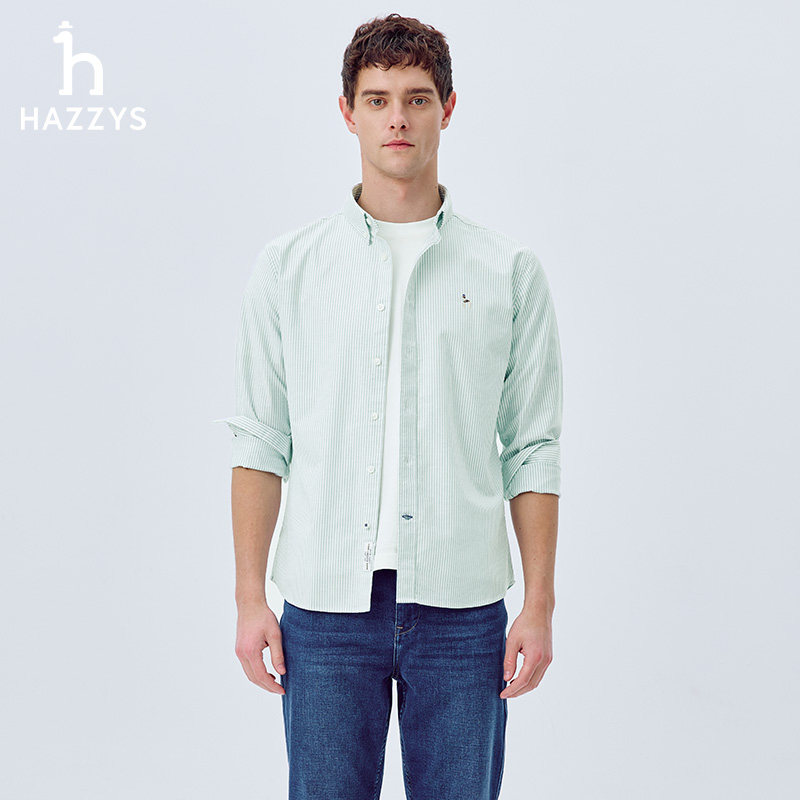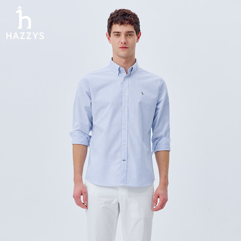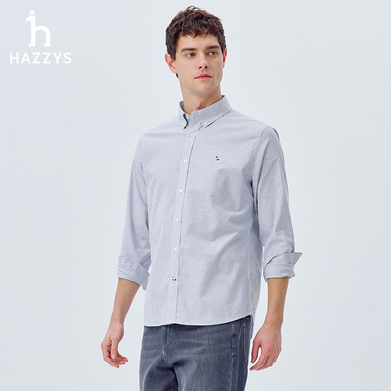 衬衫 通勤长袖 休闲简约上衣 细条纹牛津纺时尚 Hazzys哈吉斯春夏男士
