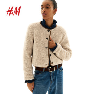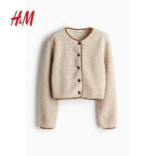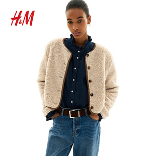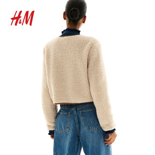 圆领长袖 新款 垫肩泰迪绒绒感外套1284360 短外套2025冬季 HM女装