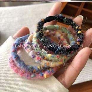 糖果色彩色点点毛线发圈发绳少女心毛绒发饰扎头发橡皮筋头绳发饰