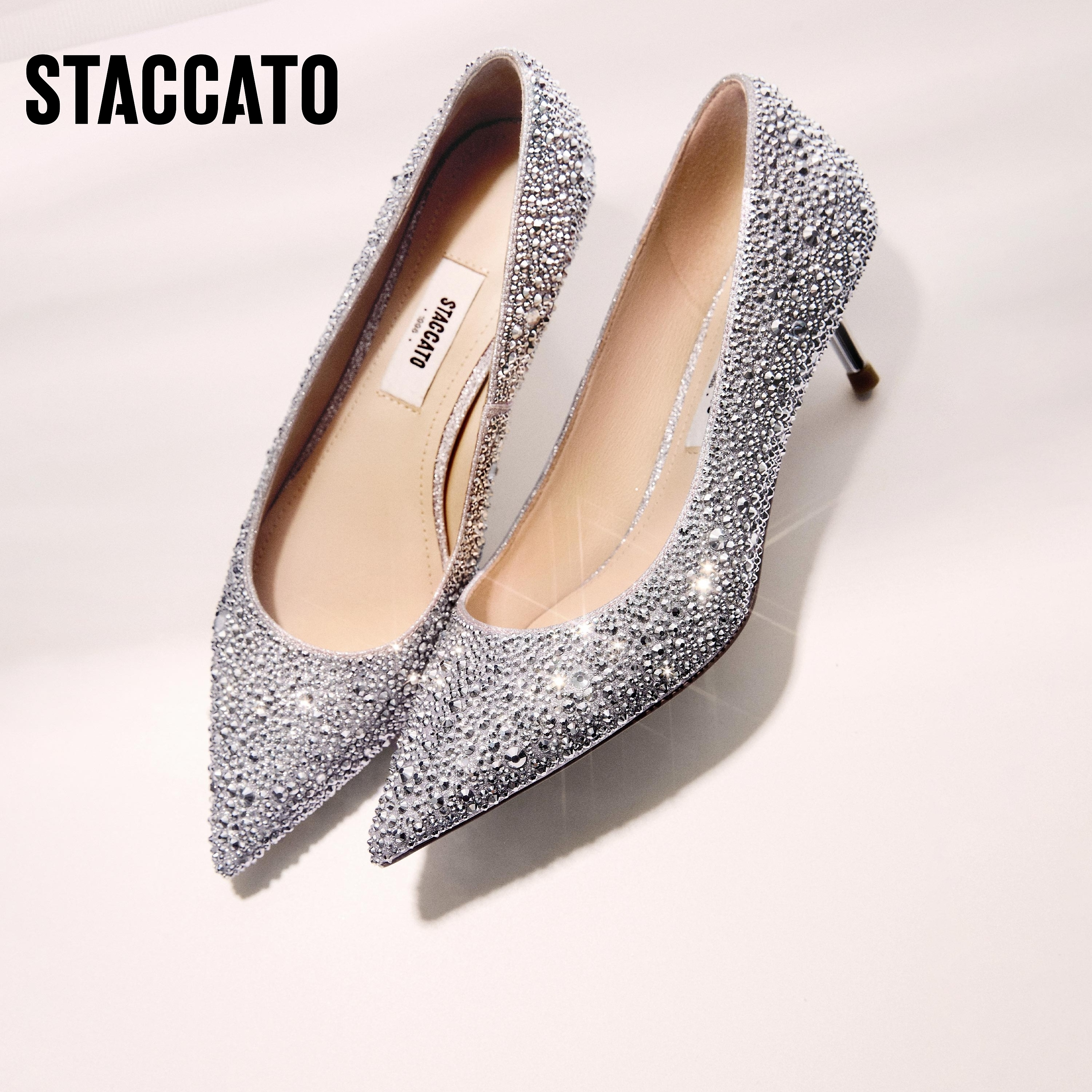水钻亮片香槟色水晶高跟鞋 2024新款 禾秀婚纱两穿新娘鞋 婚鞋 女 冬季