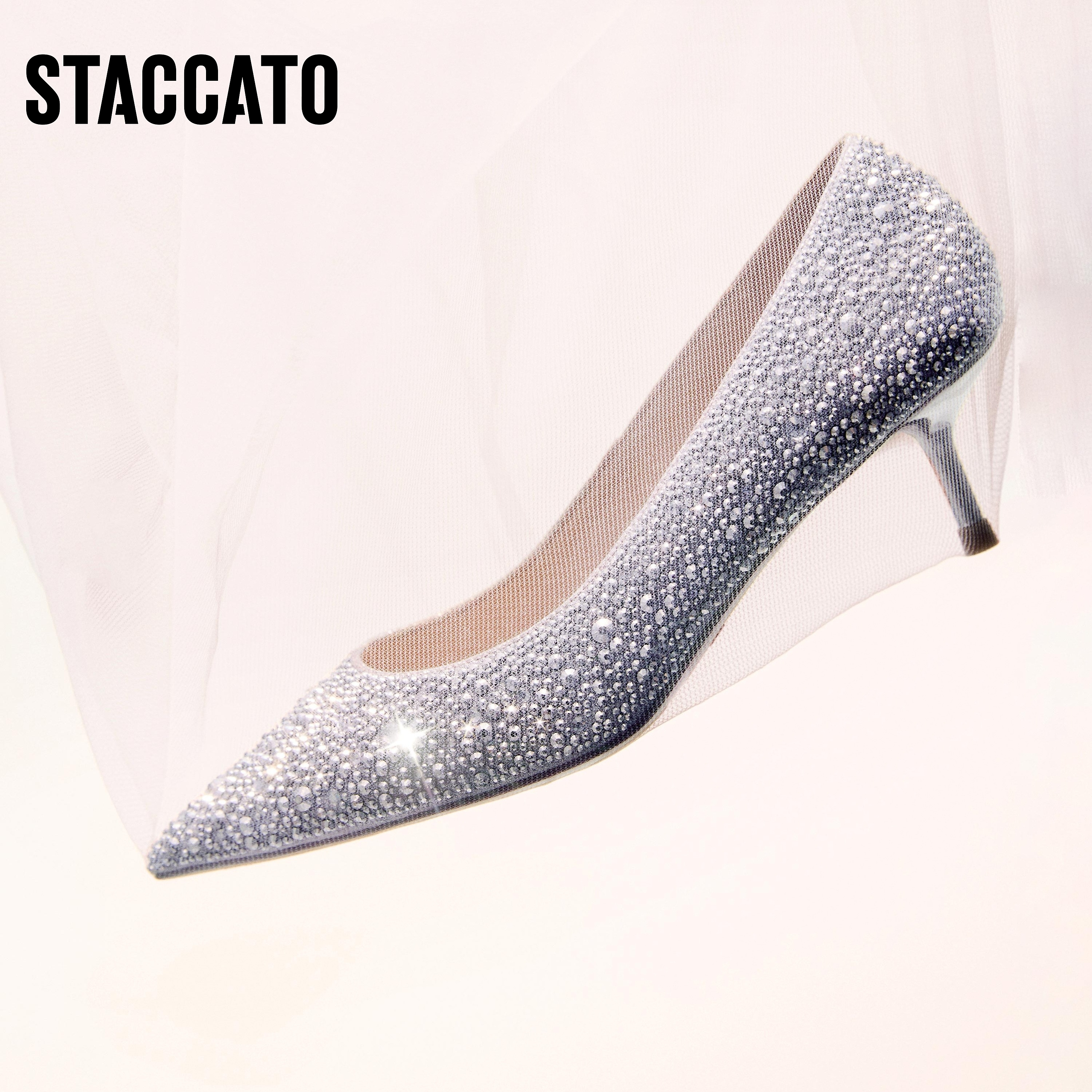 婚鞋 60361556缎面蝴蝶结尖头高跟凉鞋 CK1 CHARLES&KEITH秋冬女鞋